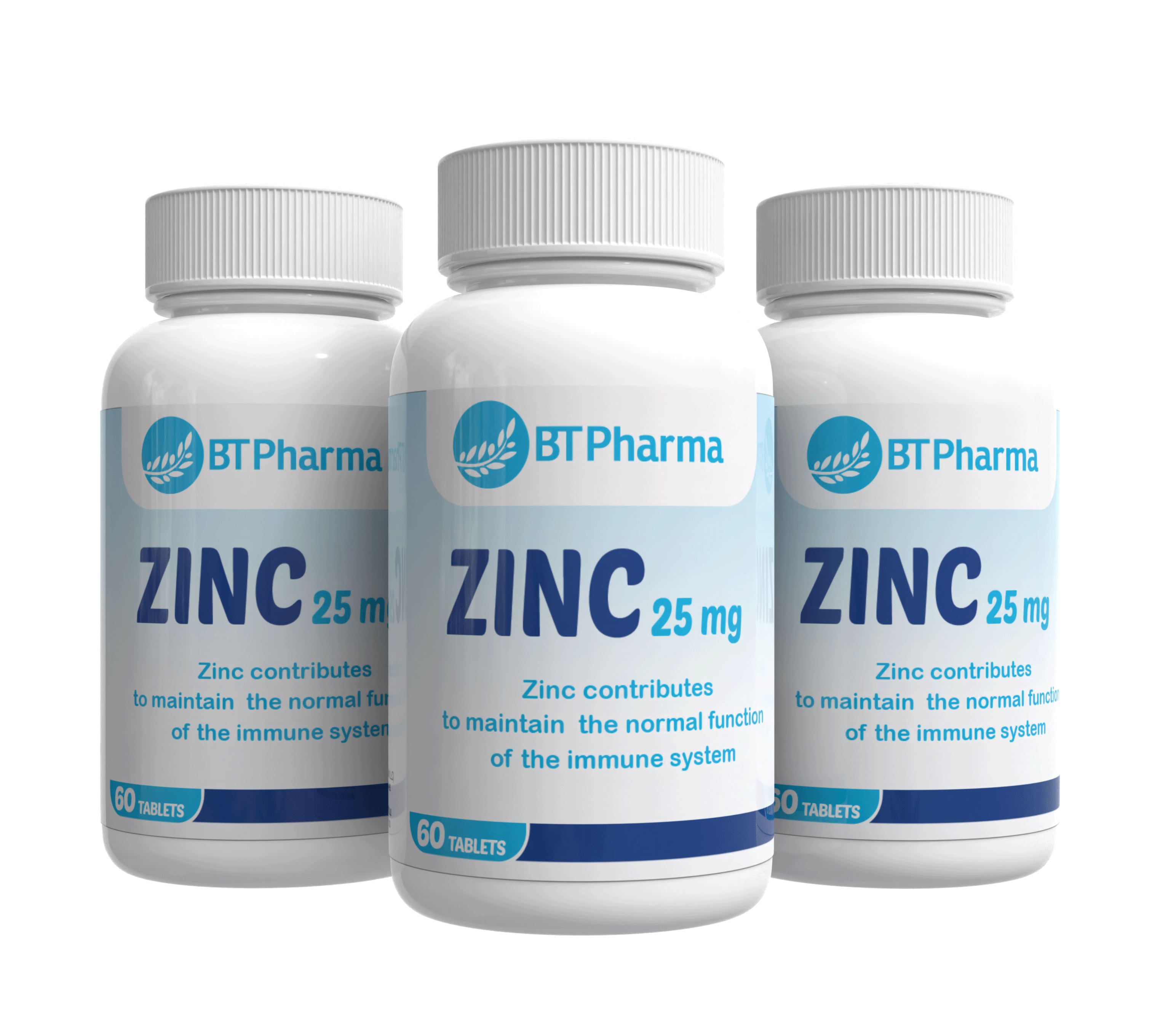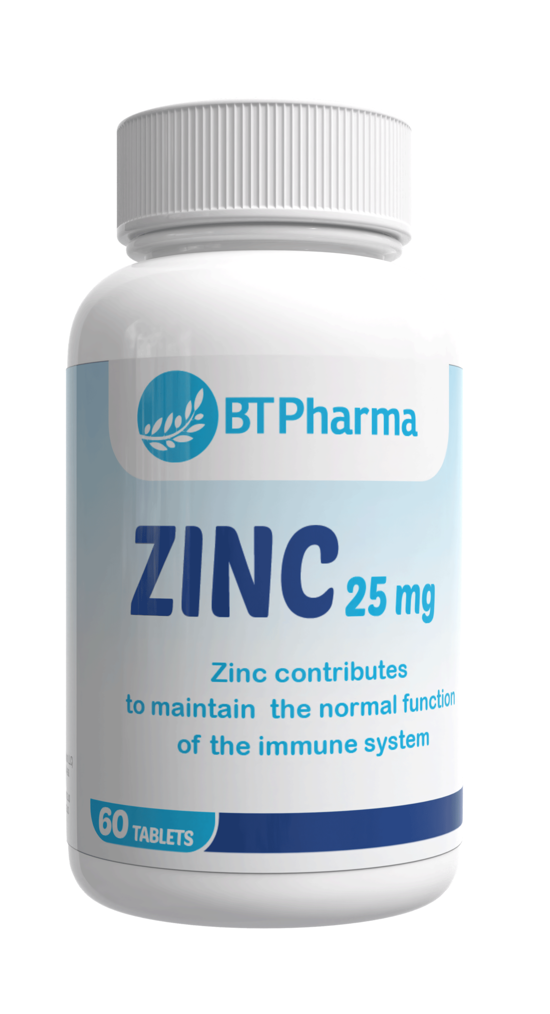BTPharma Zinc Tablets are formulated as a dietary supplement, delivering 25 mg of elemental zinc per tablet in a well-tolerated form to help maintain key body functions.
